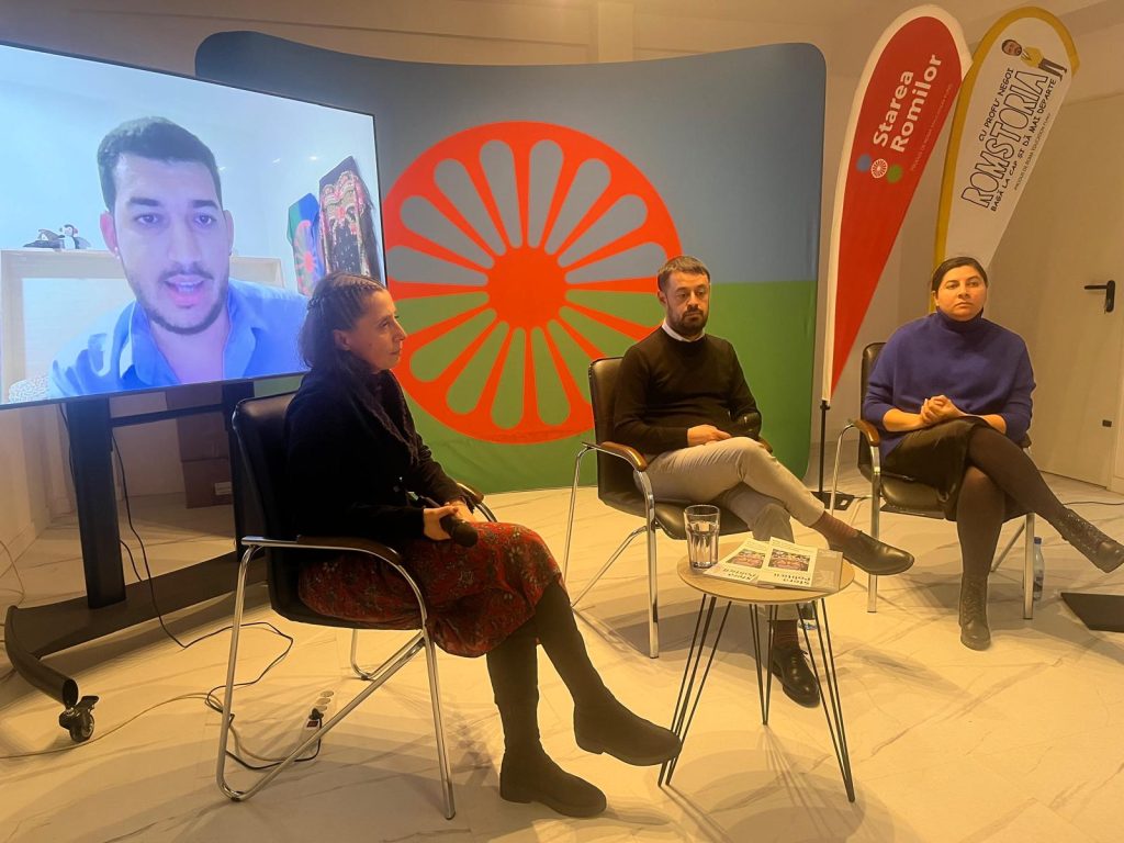 The official opening was held on November 7 at the REF Romania headquarters, moderated by Dr. Ioan Valentin Negoi. The event featured guests such as PhD candidate Maria Luiza Medeleanu, Alex Stan Master’s student at the University of Sydney, Australia, (online), and PhD candidate Oana Rusu. Discussions focused on the theme “The Image of Roma in Media: From Theatrical Art to Racism” and were streamed live on the REF Romania and RomStoria Facebook pages. The debate continued informally afterwards during a social gathering.