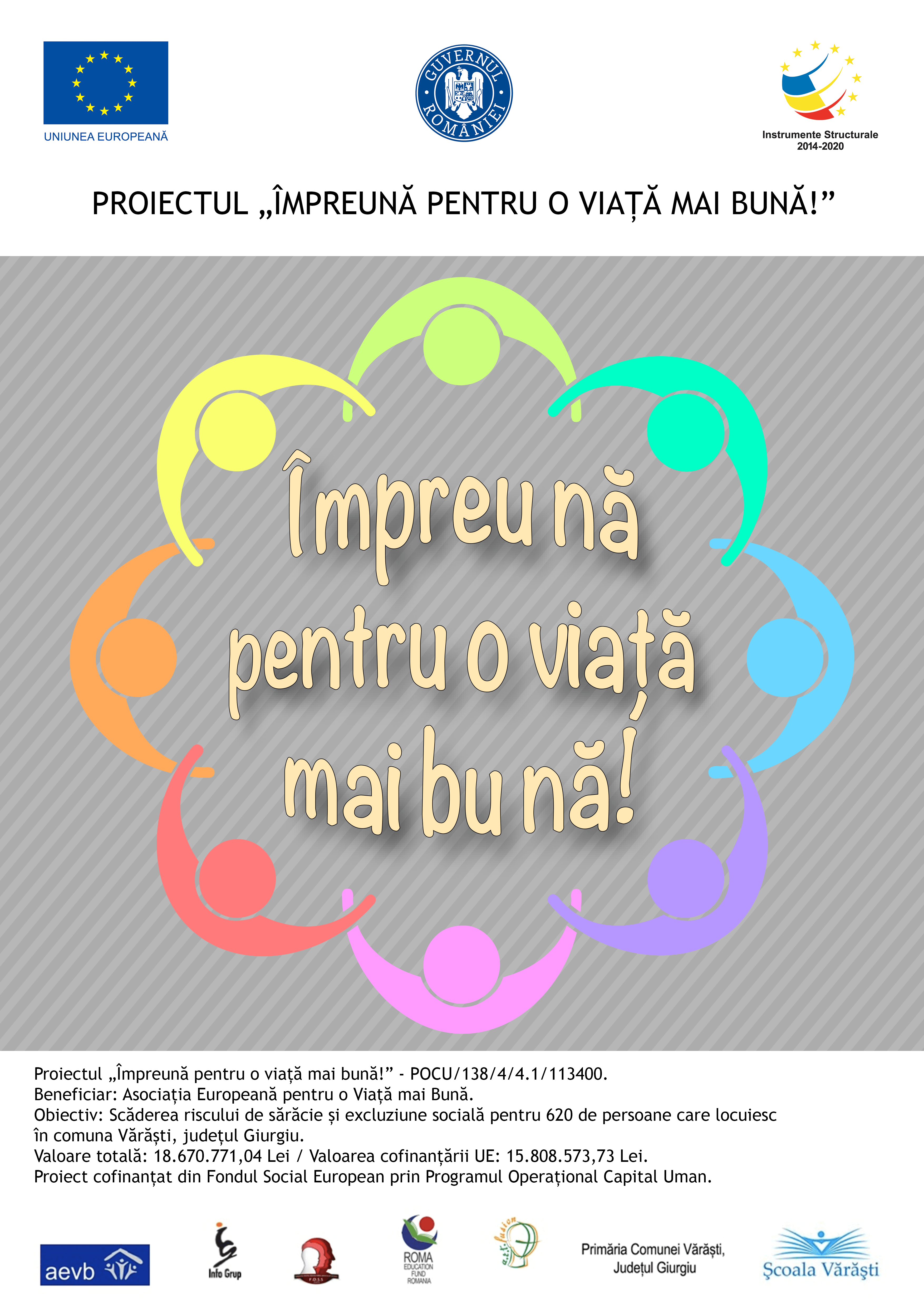 Proiect :101343 Impreuna pentru o viata mai buna! Beneficiar: ASOCIATIA EUROPEANA PENTRU O VIATA MAI BUNA Partener componenta Educatie : ROMA EDUCATION FUND ROMANIA Componenta 1 – Dezvoltare Locala Integrata (DLI 360*) în comunitatile marginalizate în care exista populatie apartinând minoritatii rome – Regiuni mai putin dezvoltate Axa Prioritara – Incluziunea sociala si combaterea saraciei [Citește mai mult]