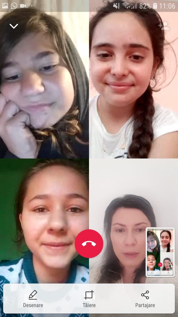 “Din cei 10 elevi de clasa a IV-a și 10 de clasa a VIII-a, grupul tință al activității educaționale din proiect, doar jumătate dintre elevii de clasa a IV-a nu au acces la tehnologie smart și la internet. Am început lucrul online cu o parte din cei 20 de elevi din data de 18 martie 2020. Întâlnirile online au fost realizate prin aplicații precum WhatsApp și Zoom sau telefonic. Am discutat cu ei despre conceptul de stres, violență și adaptarea la schimbare în contextul Covid-19. Am avut sesiuni de consiliere individuală dar şi de grup. Le-am trimis fișe de lucru pe care să le completeze în timpul liber”