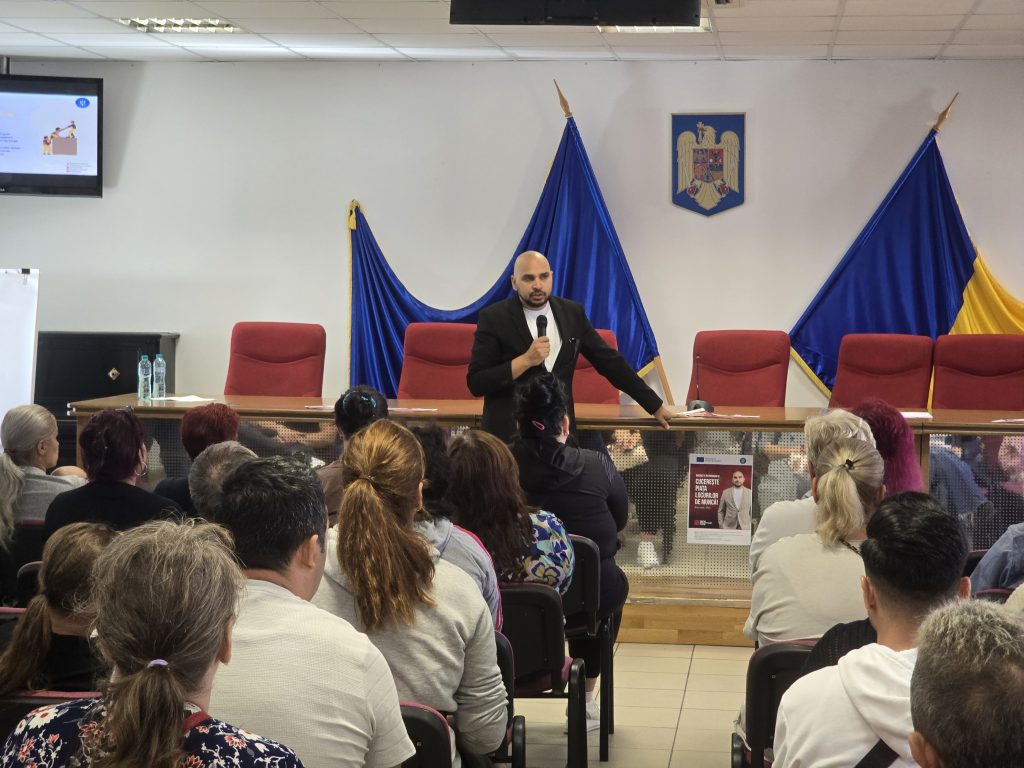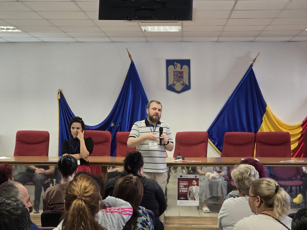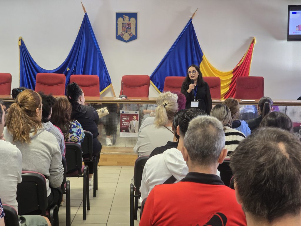 The project aims to support individuals in the Bucharest–Ilfov region with integrated services including professional counseling, vocational training courses, and personalized assistance in the employment process. Participants had the opportunity to learn about the concrete steps they can take to improve their employability and access stable career opportunities. Attendees were informed about the opportunities available through the project, including: